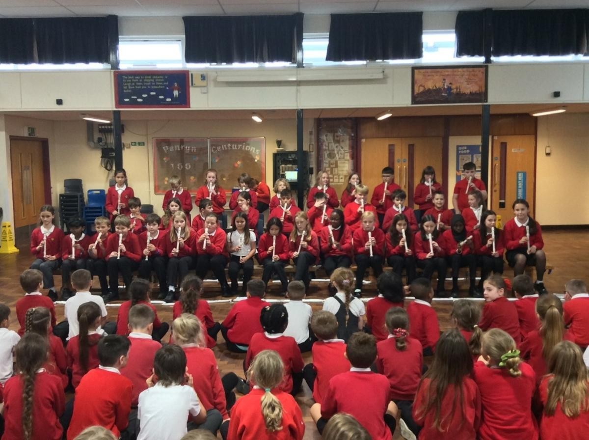 We use ‘Charanga’ to resource our music teaching, and have taken our intent questions from this program. As part of this, every child is given the opportunity to play an instrument for one music ‘block’ per year. We have a plethora of instruments here at Penryn Primary Academy, but the glockenspiels and recorders are used in line with the charanga instrument teaching. These blocks result in an assembly performance to the rest of the Key Stage.